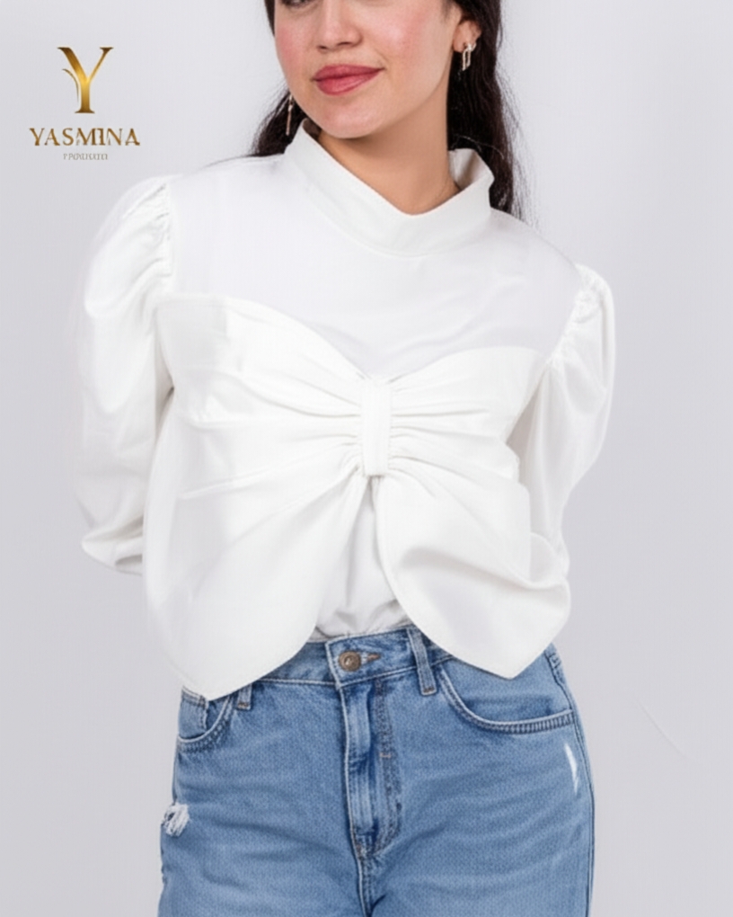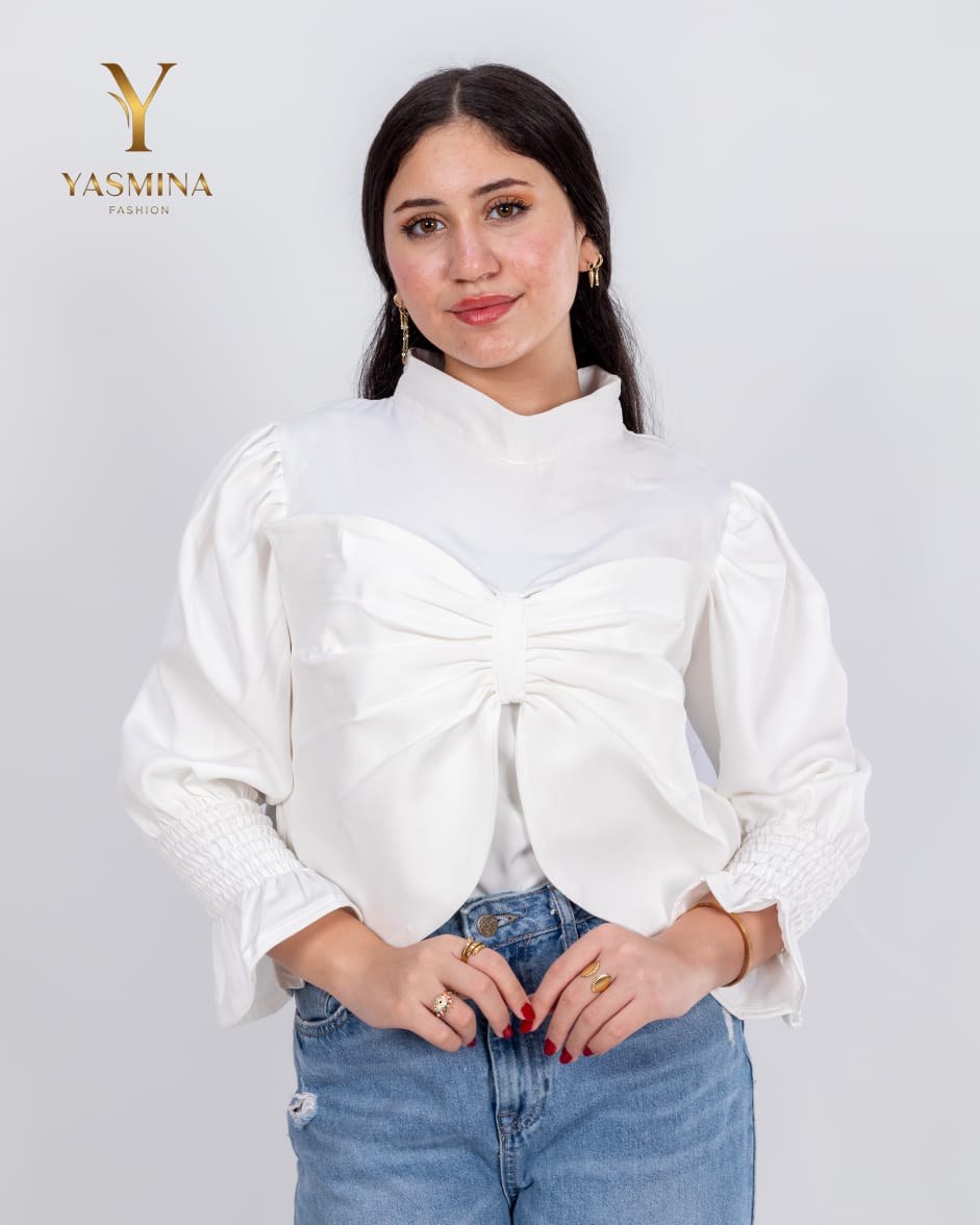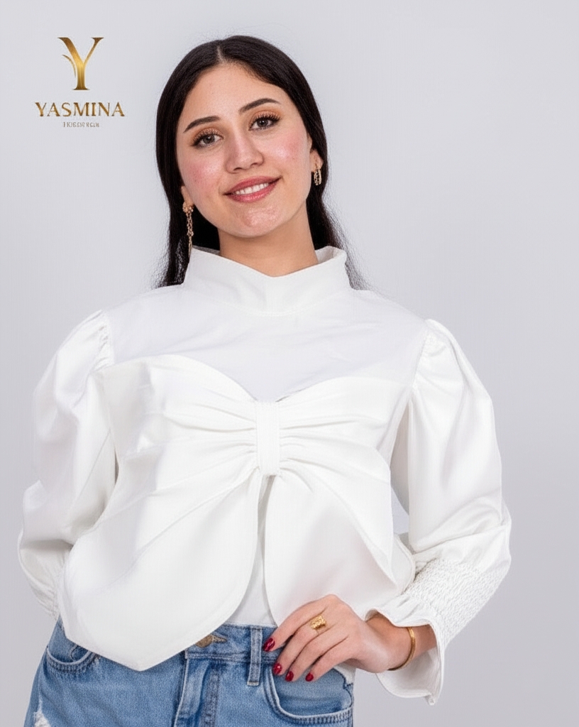 براند ياسمينا صمم وأبدع بلوزة الفيونكة لتكون قطعة فنية متعددة الاستخدامات. تصميمها الفريد يجعلها مناسبة لكل الأوقات، من الصباح إلى الليل✨